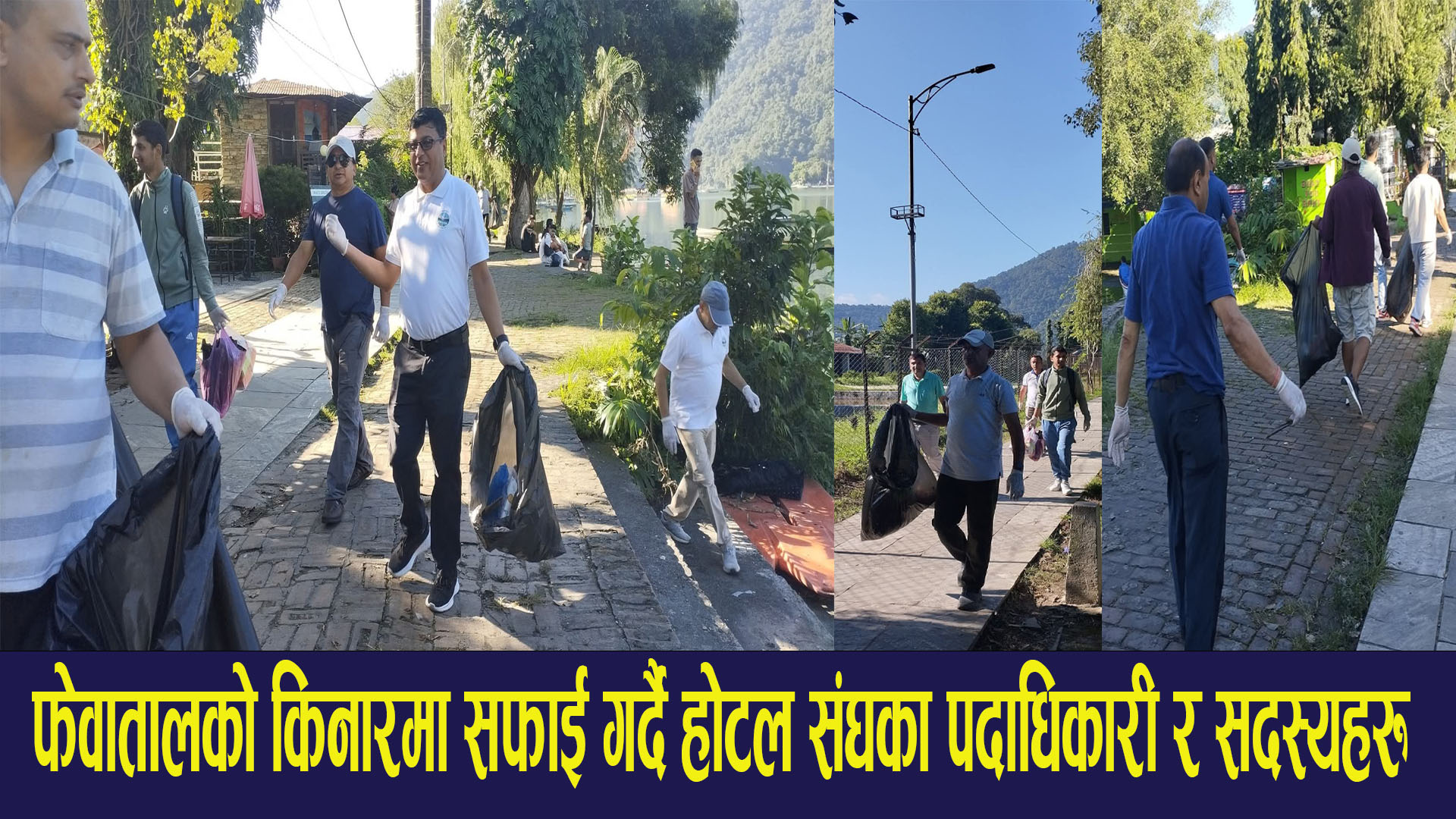 ४६ औं विश्व पर्यटन दिवसको अवसरमा होटल संघ पोखरा नेपालले शुक्रबार फेवा ताल किनारमा सरसफाई कार्यक्रम सम्पन्न गरेको छ ।