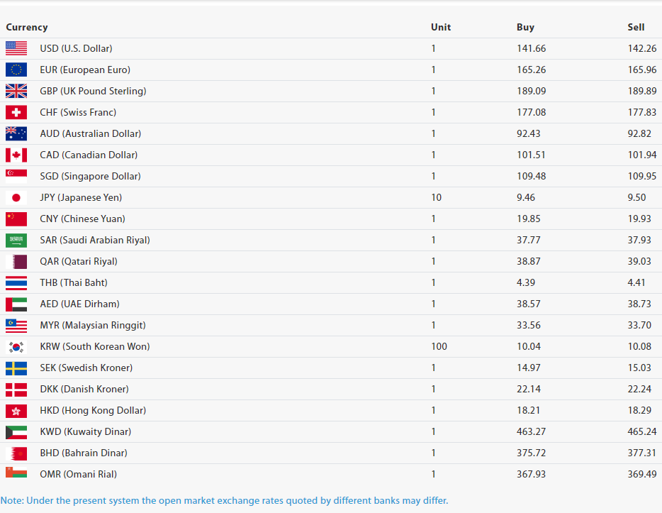 हेर्नुहोस् राष्ट्र बैंकले निर्धारण गरेका सबै मुद्राको विनिमय दर