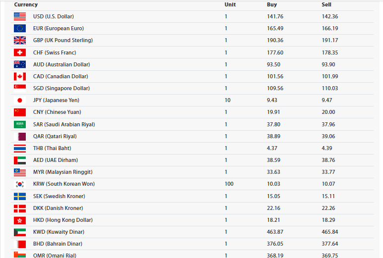 राष्ट्र बैंकका अनुसार अमेरिकी डलर १ को खरिदर १४१ रुपैयाँ ७६ पैसा र बिक्रीदर १४२ रुपैयाँ ३६ पैसा कायम भएको छ।