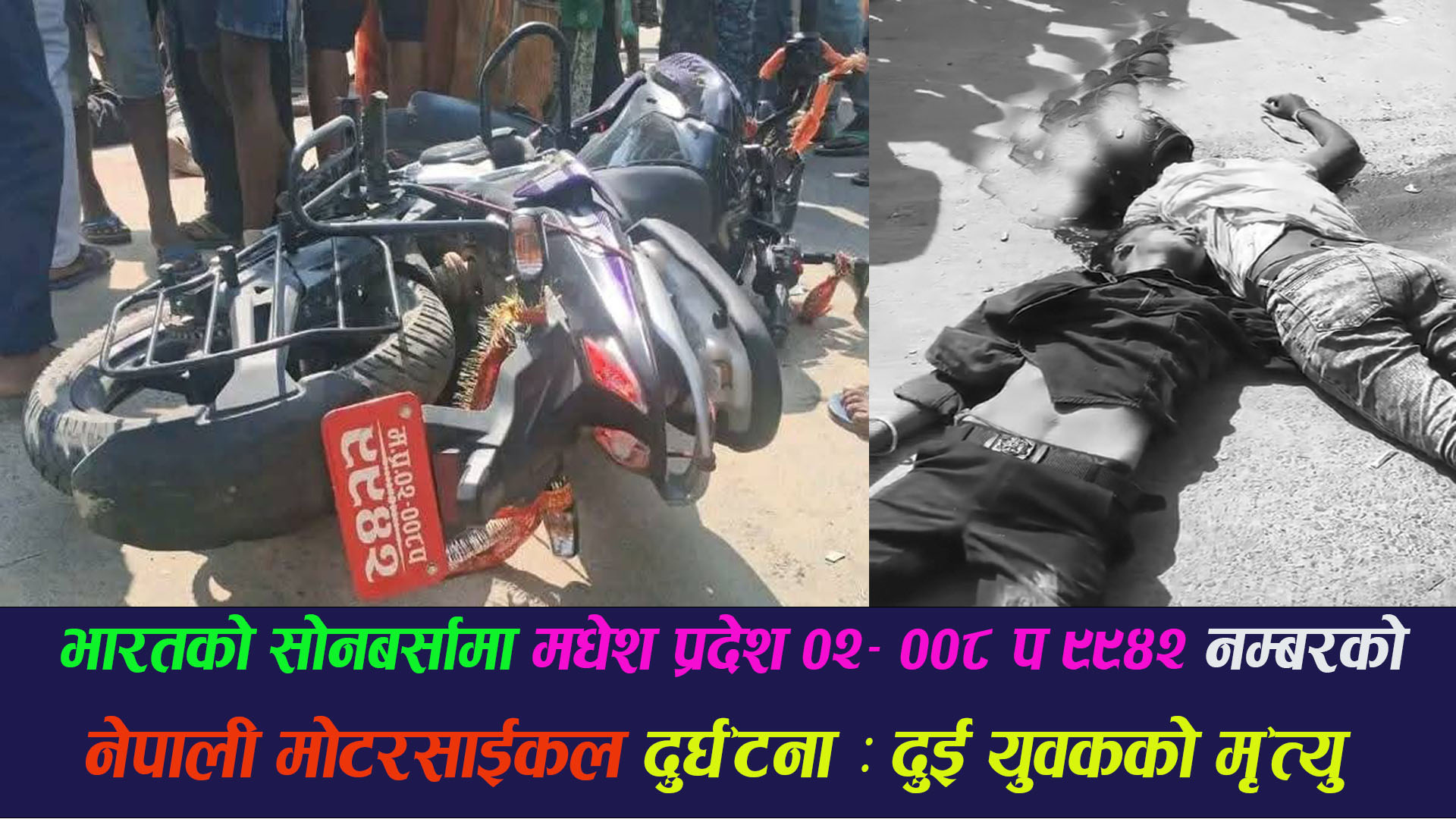 भारतको सोनबर्सामा नेपाली नम्बर प्लेट भएको एक मोटरसाइकल दुर्घ’टनाग्र’सत हुँदा दुई युवाको नि’धन भएको छ।