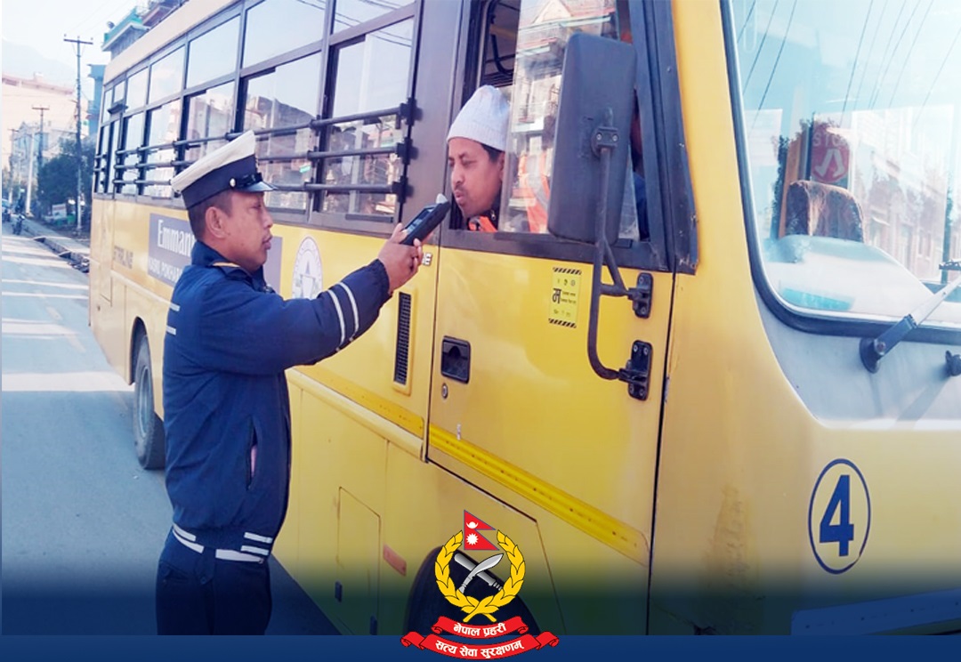 जिल्ला प्रहरी कार्यालय कास्की तथा जिल्ला ट्राफिक प्रहरी कार्यालय कास्कीको संयुक्त टोलीले आज बिहान पोखराका विभिन्न स्थानहरुमा गरेको सवारी साधनहरुको चेकिङ्गका क्रममा रक्सी खाएर स्कुल बस चलाइरहेका पांच जना ड्राइभरहरुलाई पक्राउ गरेको हो।