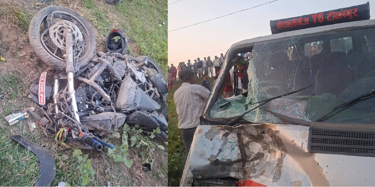 कैलालीमा हाईस र माेटरसाइकल ठाेक्किदा माेटरसाइकलमा सवार दुई जनाकाे मृत्युु भएको छ । पूर्वपश्चिम राजमार्ग अन्तरगत लम्कीचुहा नगरपालिका-७ गुलारामा मंगलबार साँझ सवा ६ बजेतिर सुपप्र ०१००१ ज १४२१ नम्बर हाईस र सुपप्र ०१०१३ प ५४३९ नम्बरको माेटरसाइकल आपसमा ठोक्किंदा दुई जनाको मृत्यु भएको हो।