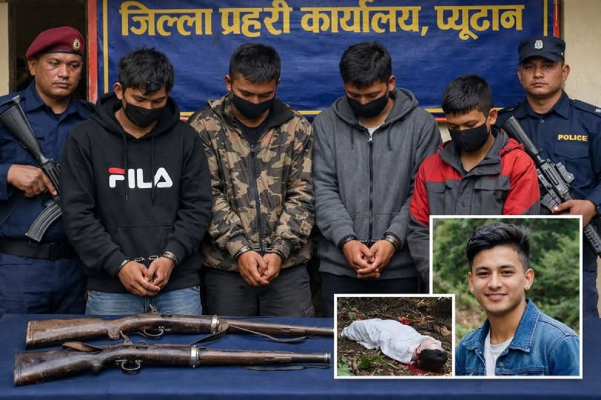 उक्त घटनामा संलग्न रहेको आरोपमा गौमुखी–४ खलाबाङका २७ वर्षीय वीरेन्द्र केसी, उनका भाइ विश्वास केसी, १९ वर्षीय रवी केसी र एक १५ वर्षीय बालकलाई नियन्त्रणमा लिइएको जिल्ला प्रहरी कार्यालय प्युठानका प्रहरी निरीक्षक हरि भट्टराईले जानकारी दिए । घटनामा प्रयोग गरिएका दुई थान भरुवा बन्दुक पनि ब’रामद गरिएको प्रहरीले जिकिर गरेको छ।