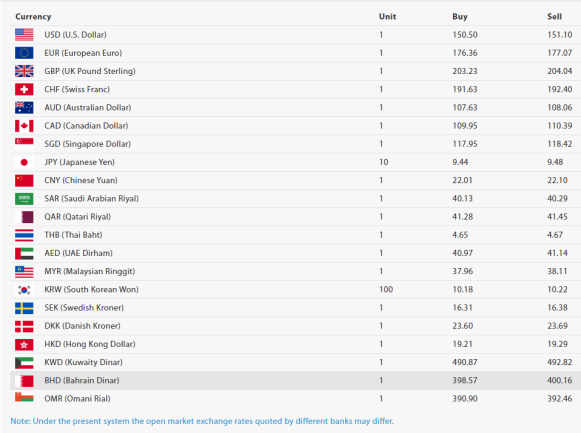 आज बहराइन दिनार १ को खरिदर ३९८ रुपैयाँ ५७ पैसा र बिक्रीदर ४०० रुपैयाँ १६ पैसा छ। हिजो बहराइन दिनार १ को खरिदर ३९७ रुपैयाँ ८३ पैसा र बिक्रीदर ३९९ रुपैयाँ ४२ पैसा थियो।