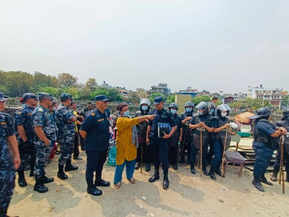 काठमाडौँ उपत्यका प्रहरी प्रमुख एआईजी ईश्वर कार्की, डिआईजी ओम अधिकारी, सशस्त्र प्रहरी बलका डिआइजी सुरेश श्रेष्ठ लगायतका सुरक्षा टोलीहरू थापाथली स्थित सुकुम्बासी बस्तीमा पुगेर त्यहाँको अवस्थाबारे निरीक्षण गरेका छन् ।